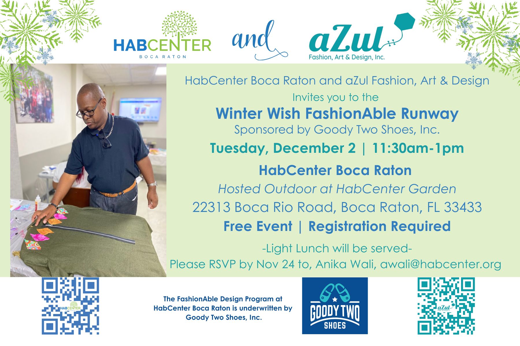 HabCenter Boca Raton 22313 BOCA RIO ROAD, Boca RatonGet ready for a joyful and inspiring afternoon! HabCenter Boca Raton and aZul Fashion, Art & Design invites you to the Winter Wish FashionAble Runway, sponsored by Goody Two Shoes, Inc. Join us on Tuesday, December 2 from 11:30am–1pm at HabCenter Boca Raton, hosted outdoor at HabCenter Garden - 22313 Boca Rio Road, Boca Raton, […]