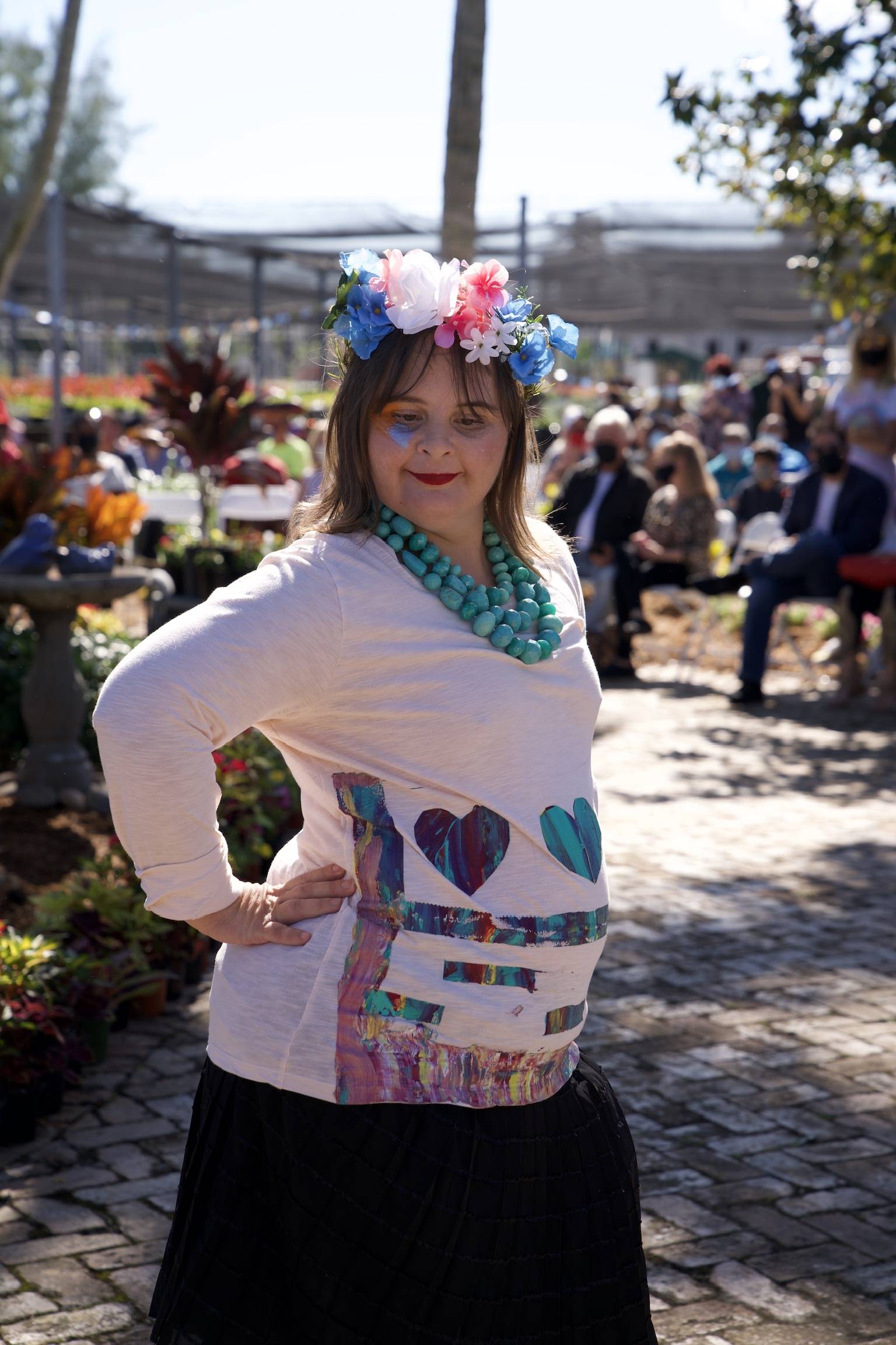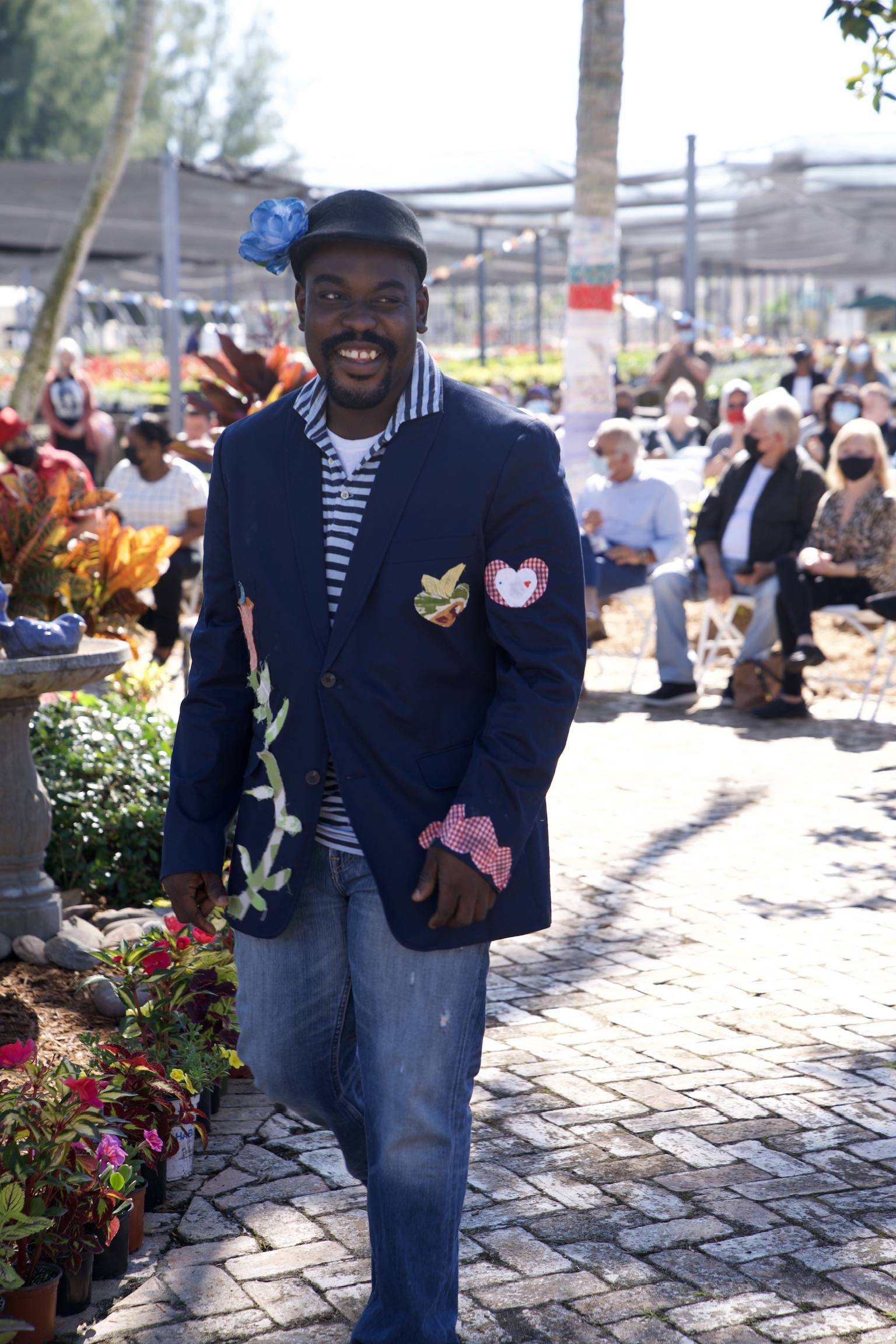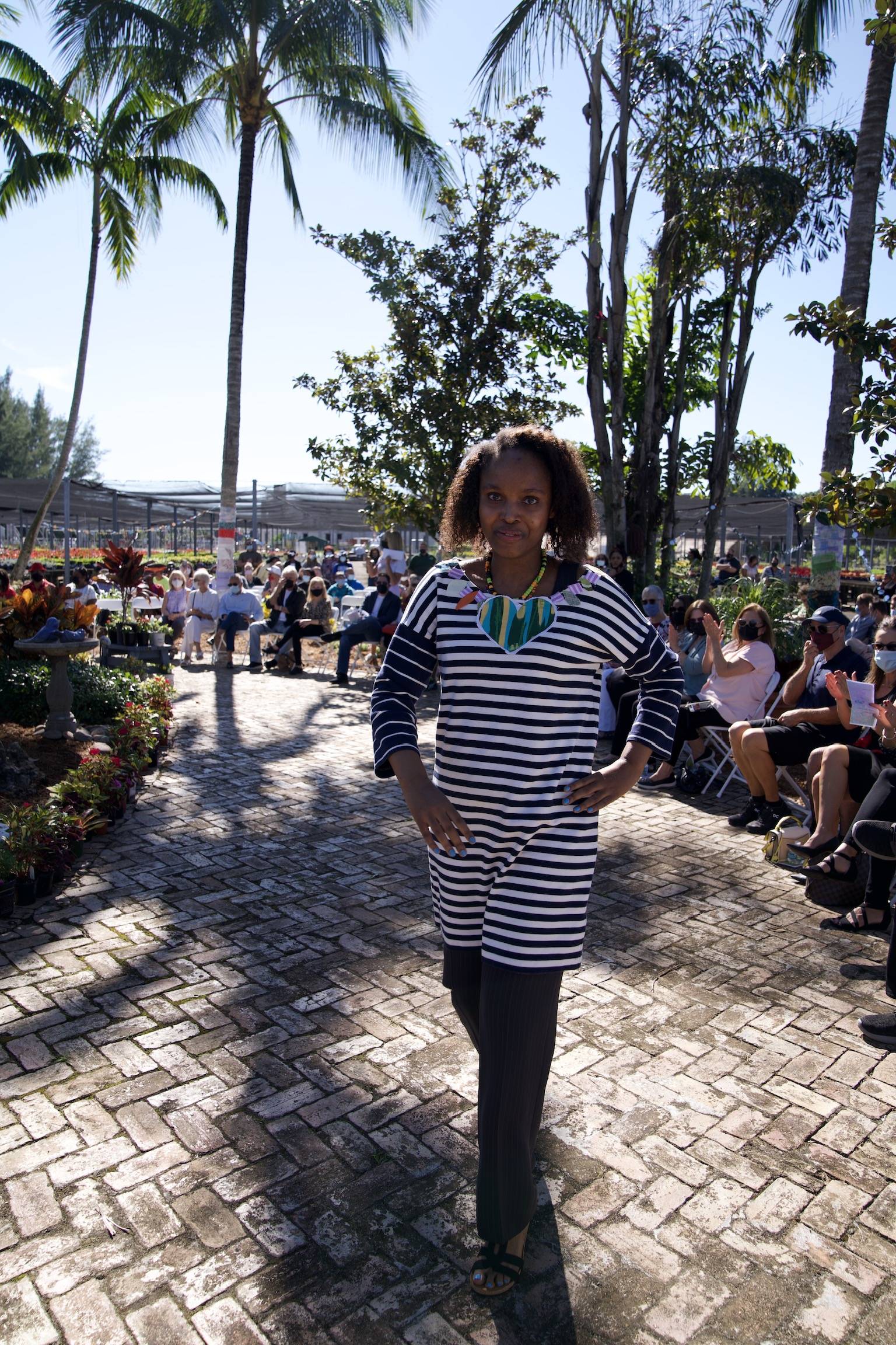 Families and friends of the designers and models enjoyed sitting in the beautiful HabCenter Garden as 20 HabCenter clients (adults with special needs) took to the stage to showcase sustainable fashions they created throughout a FashionAble Program facilitated by Sandra Raffaelli and her team from aZul – Fashion, Art & Design. “We were honored to witness the empowerment the clients experience in our FashionAble program,” says Alison Burckhardt, Director, and volunteer at aZul.